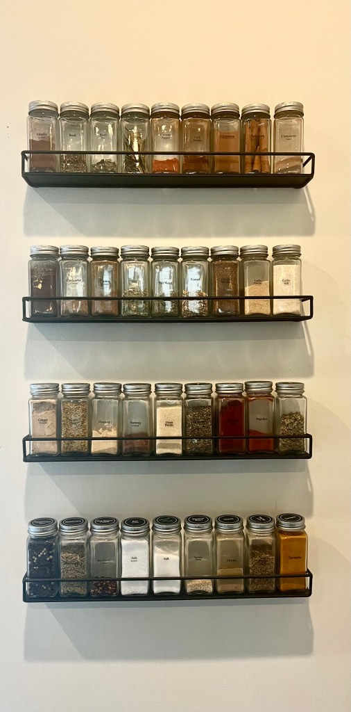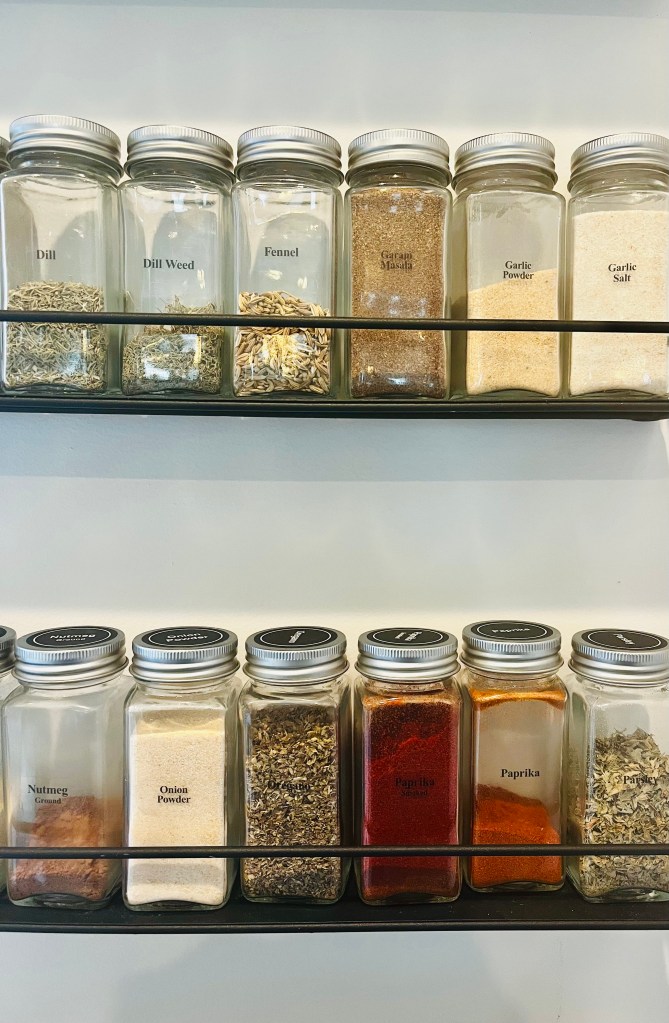 After that, everything fell into place! I hung the racks, transferred all spices from their existing jars into the new ones and labeled everything (this process for my type A self was so satisfying).