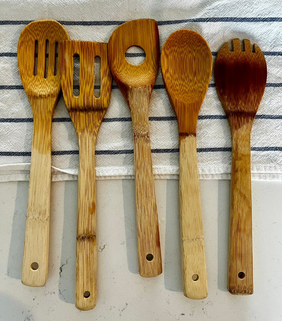 - I noticed they got very dry – there is something these viral videos don’t tell you which is that this method really gets the oil off the utensils. This isn’t necessarily a good thing in my opinion. It’s normal to have ‘seasoned’ utensils and food oils on them. After doing this process I noticed that one of the spoons had some minor cracks. It’s no big deal but I think the videos leave out that you should probably oil the utensils after boiling to prevent over-dryness.